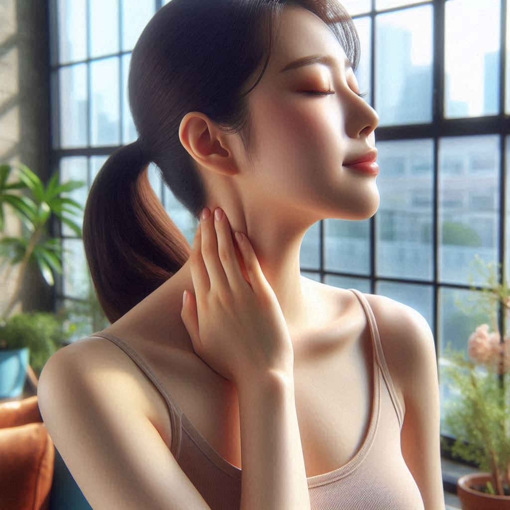 - 좌우로 천천히 목을 돌리며 근육을 풀어줍니다.