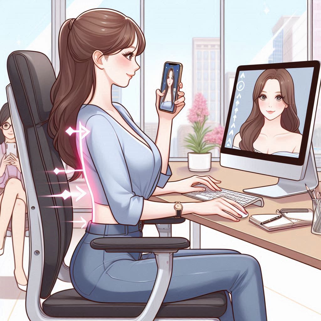 - 의자에 앉을 때 허리를 곧게 펴고 등받이를 활용