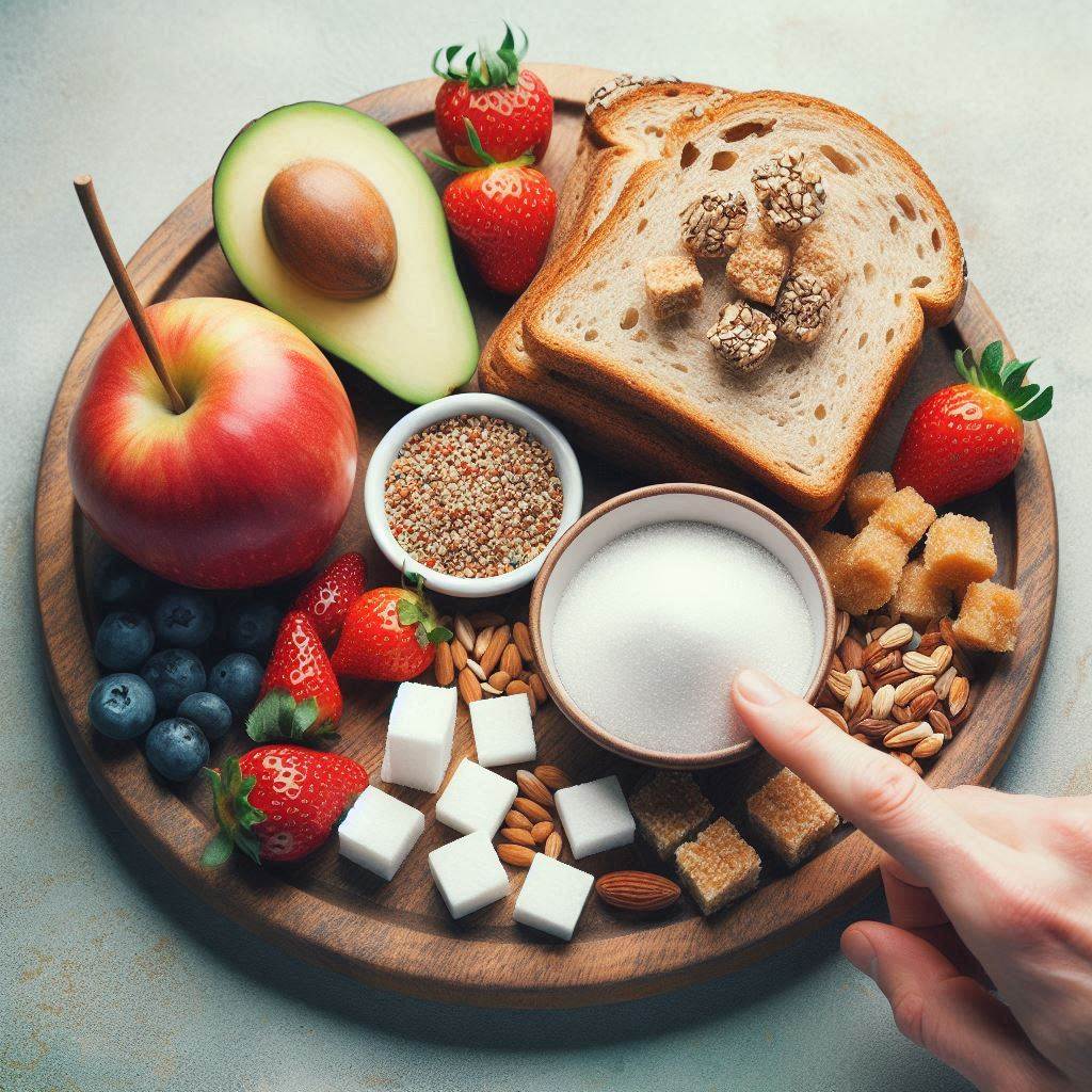 당분이 적고 혈당 지수가 낮은 식품을 선택하여 혈당을 안정적으로 유지합니다. 예를 들어, 흰빵 대신 통곡물 빵을, 설탕 대신 스테비아를 사용하는 것이 좋습니다.